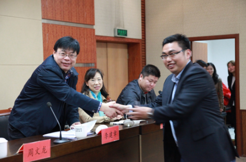 浙江理工大学党委副书记周文龙致辞,他代表学校对大家的到来表示欢迎,同时介绍了学校以及体育工作的情况。周书记表示“学校已将承办大学组女足和女篮两项比赛列为今年十项重点工作之一,全校将齐心协力、积极准备,确保比赛顺利进行”。 浙江省教育厅体卫艺处处长李建章在讲话中指出:为确保我省运动健儿在学运会上取得良好成绩,以“愿望、优势、要求”三个方面提出工作希望,要求各运动队遵守规矩,要求确保运动员准时参赛、要求运动员发挥最佳比赛状态,取得良好成绩向全省人民汇报。